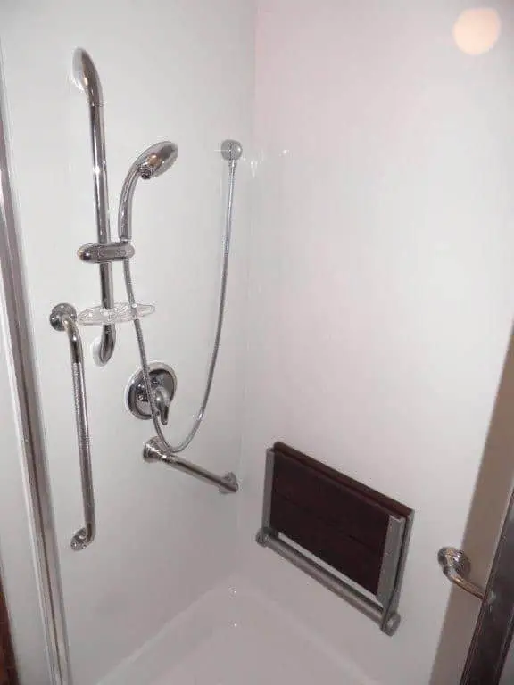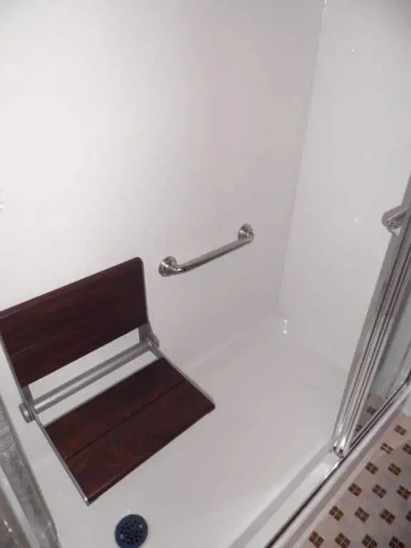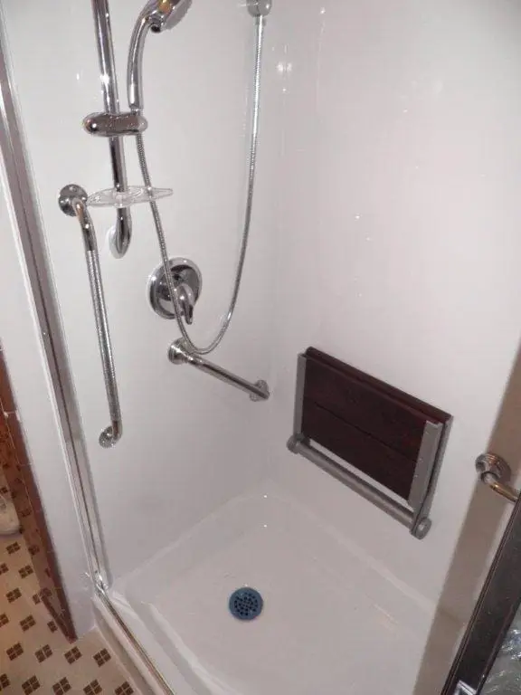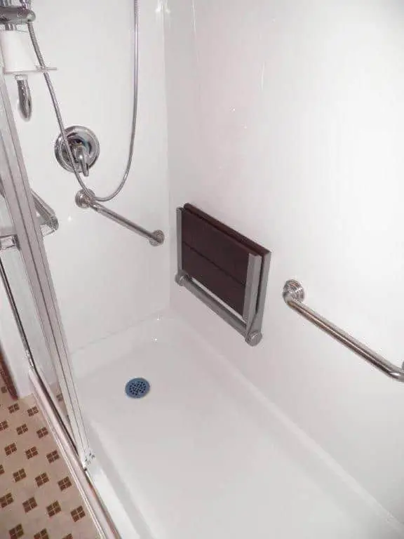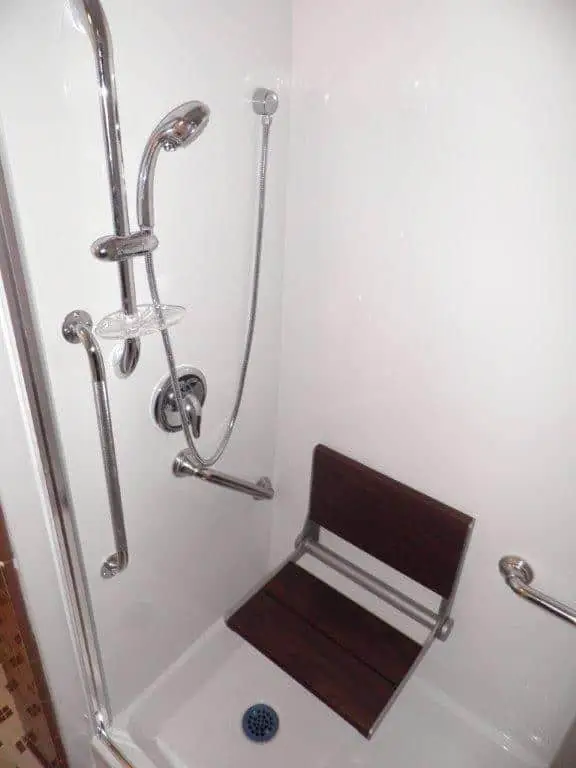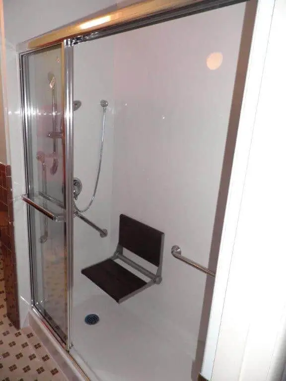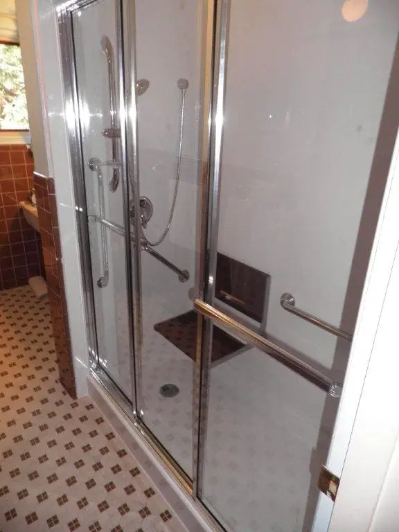 We also installed side rail kits to ensure that our client would have something to hold onto when getting in and out of the shower. This would further add to safety in the showering process. We also built and installed a three-paneled shower door for privacy purposes.
