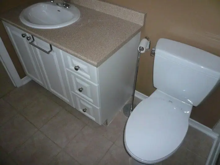 We then installed a countertop sink and a white toilet to go with the color scheme used in the shower space.