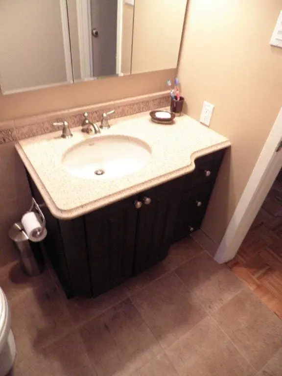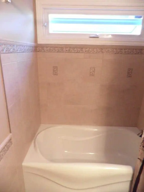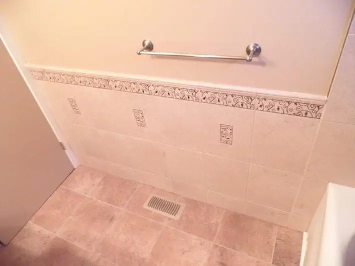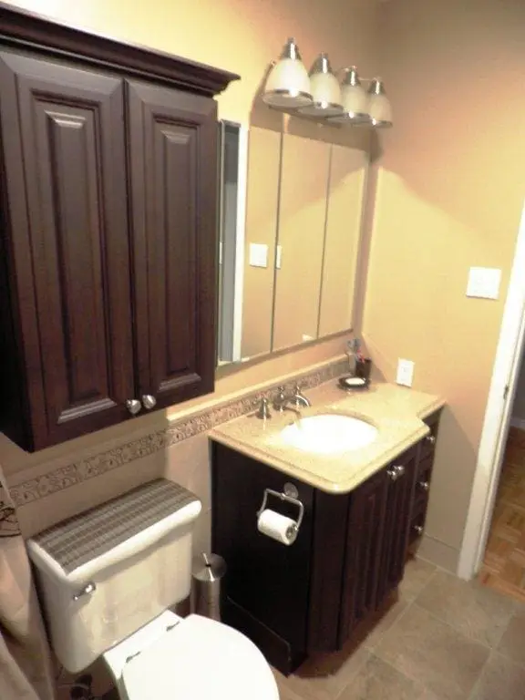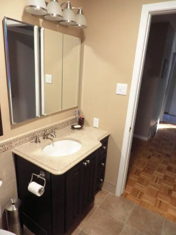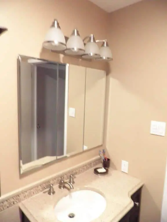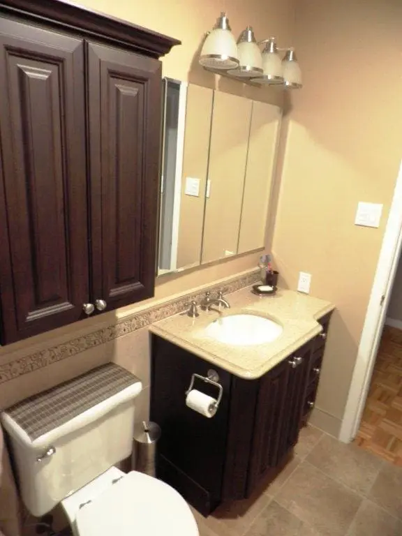 When all these changes were done, we decided to recess the mirrored medicine cabinet. Furthermore, we installed a light fixture that brightened up the whole place with its warm light. Lastly, we also did tile wainscoting at the borders. Eventually, we ended up painting the bathroom as well, making sure the bathroom looked as good as brand new.
