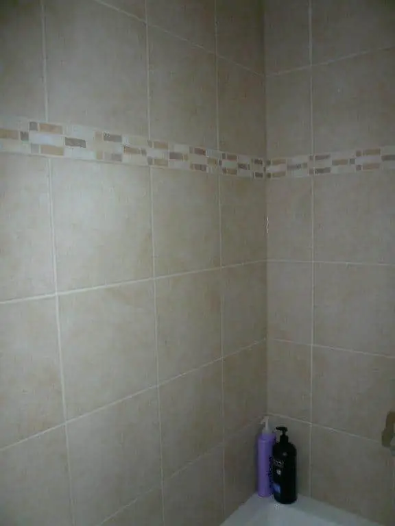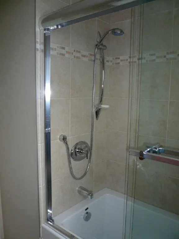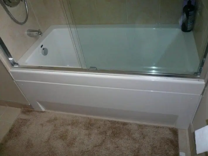 In this particular project, we did it all. We first replaced their old bathtub with a custom white deep soaker bathtub. We also replaced their shower faucets with new stainless-steel ones, which included a hand shower and a tub faucet, which gave off a minimalistic look our client was now hoping to achieve. For convenience, we also installed a slide rail in the shower area. Of course, all of this was done after our team had retiled the shower walls with two custom tiles. We then finished off the shower area with a two-pane glass door.
