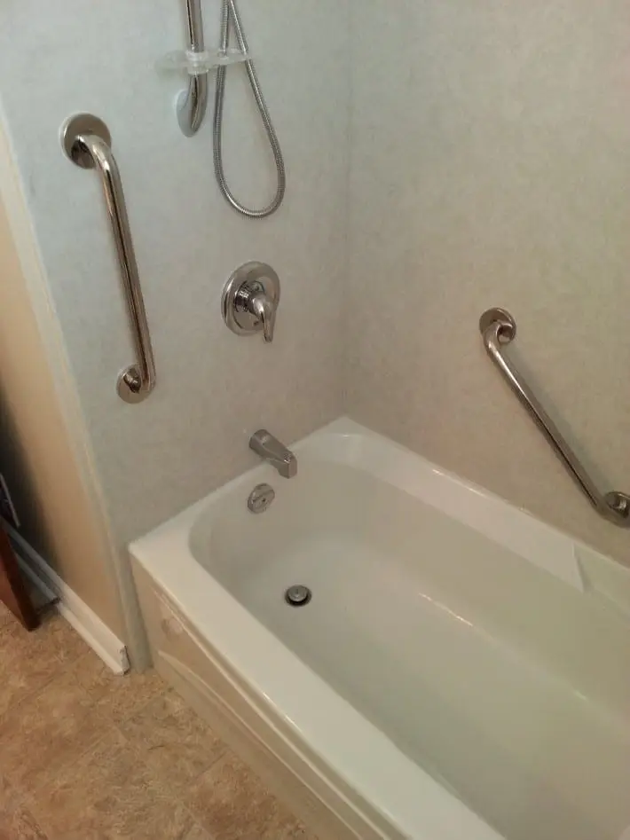 To start off, we removed their old bathtub and installed a new acrylic bathtub. After this, we put up acrylic walls to the bath area, which were custom-made. After this, we installed a shower faucet as well as a tub faucet with a slide rail. The slide rail made sure there were no safety hazards. Alongside this, we also put up a hand shower, a curtain rail and a two-shelf shower caddy. These additions helped in maximizing utility by making safety and storage much easier.