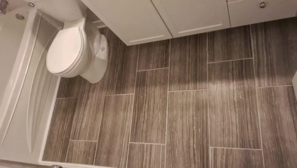 We started off by firstly changing the flooring of the bathroom. For the flooring, several steps were involved. We replaced the old tiles with structured grey and black tiles. These tiles added a lot of personalization to the place while also adding depth.