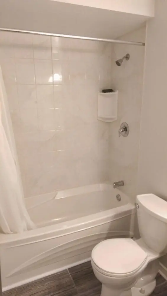 This included adding a shower faucet as well as a showerhead on the top of the wall. Along with this, we also added a one-shelf shower caddy on the wall right next to the shower. To give the shower the last touch, we decided to add a shower curtain rod.